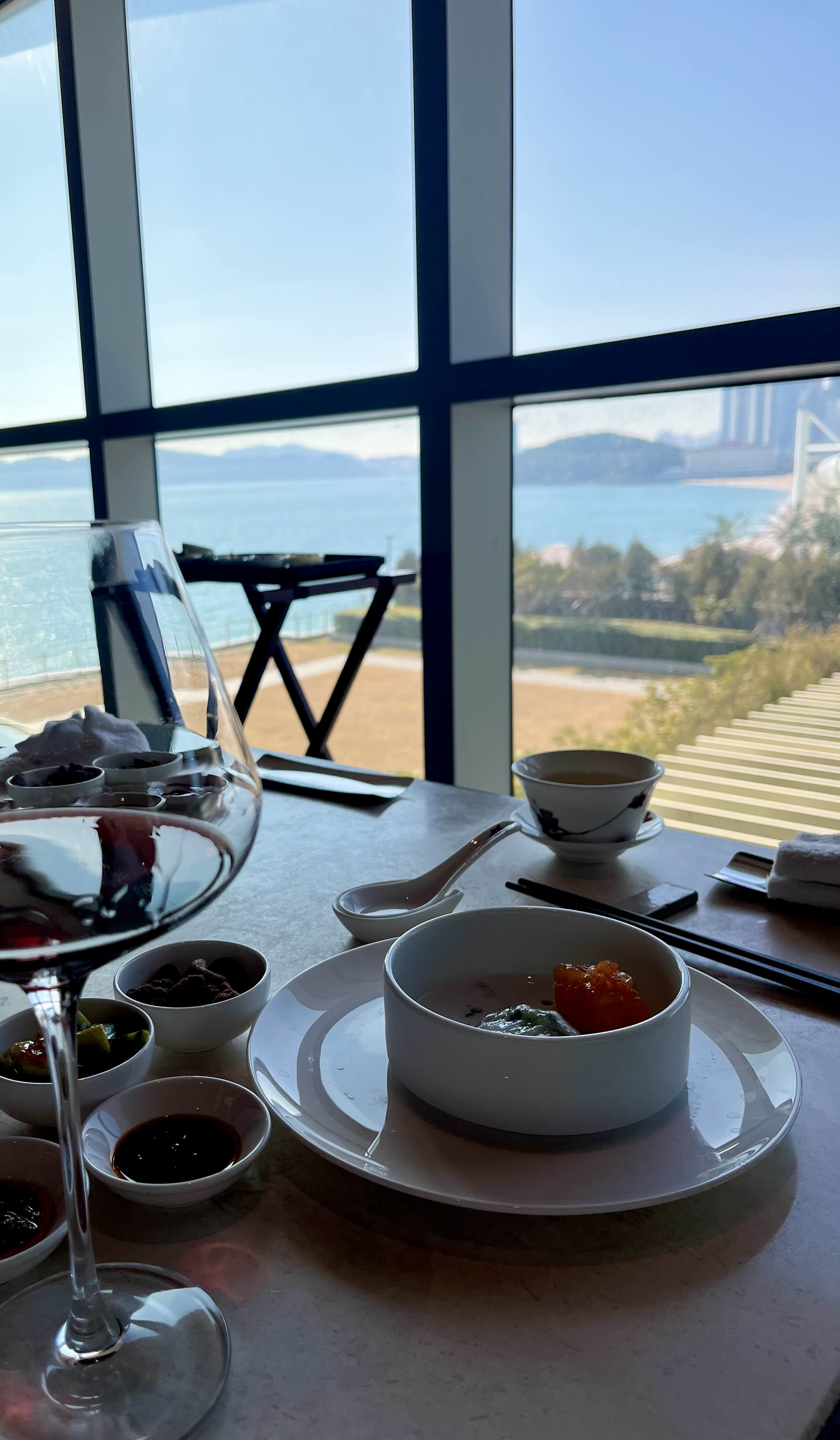 창밖으로 펼쳐지는 오션뷰 덕분에 식사를