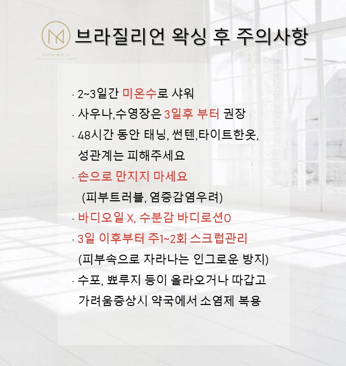 ✔️48시간 동안 사우나, 수영, 일광욕 금지