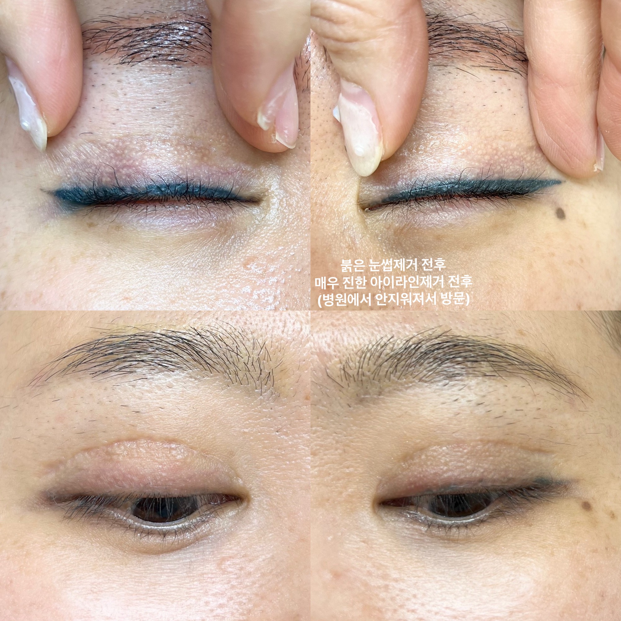 1. 예전에 했던 반영구 눈썹이나 아이라인이 시간이 지나면서 퍼지고 색이 이상하게 변했어요