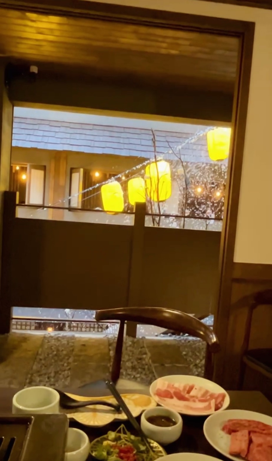 일본 료칸을 연상시키는 목조 인테리어와 정갈한 정원, 노란 초롱등이 내린 중정까지…